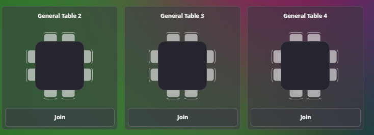 To use an open table, go to the top of the Writers’ Lounge area and scroll down until you see General Tables 31-40. Click on the “Join” button to grab a seat. Use the participant icon in the bottom right corner to invite other people to join you at the table.