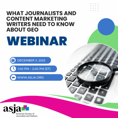 Have you been meaning to update your ASJA profile, but just can’t seem to find the time? This workshop covers the technical how-to’s and tips for a stand-out profile. This is an investment in your business – ASJA members have landed quality clients directly from their profiles.